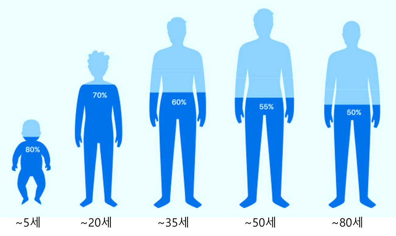 실제로, 최근 발표된 연구에 따르면 나이가 들수록 체수분 비율이 낮아지며, 이는 탈수와 관련된 질병에 더 취약하게 만들 수 있습니다(Lee et al., 2020).